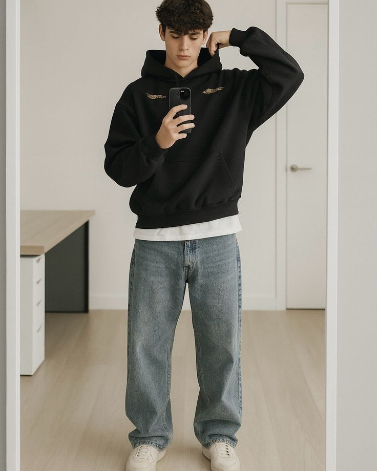 | Winter | Hoodie + baggy jeans | Sneakers/boots |