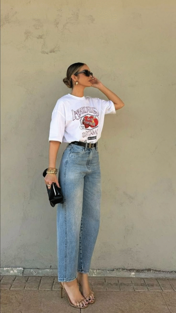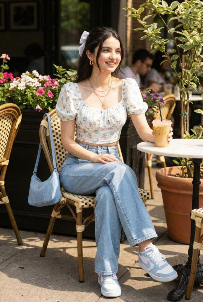 Wearing a crop top with baggy jeans is easy, but styling it right makes all the difference. Accessories play a major role in upgrading the look. Chunky sneakers, mini bags, layered chains, and oversized sunglasses are dominating this trend.