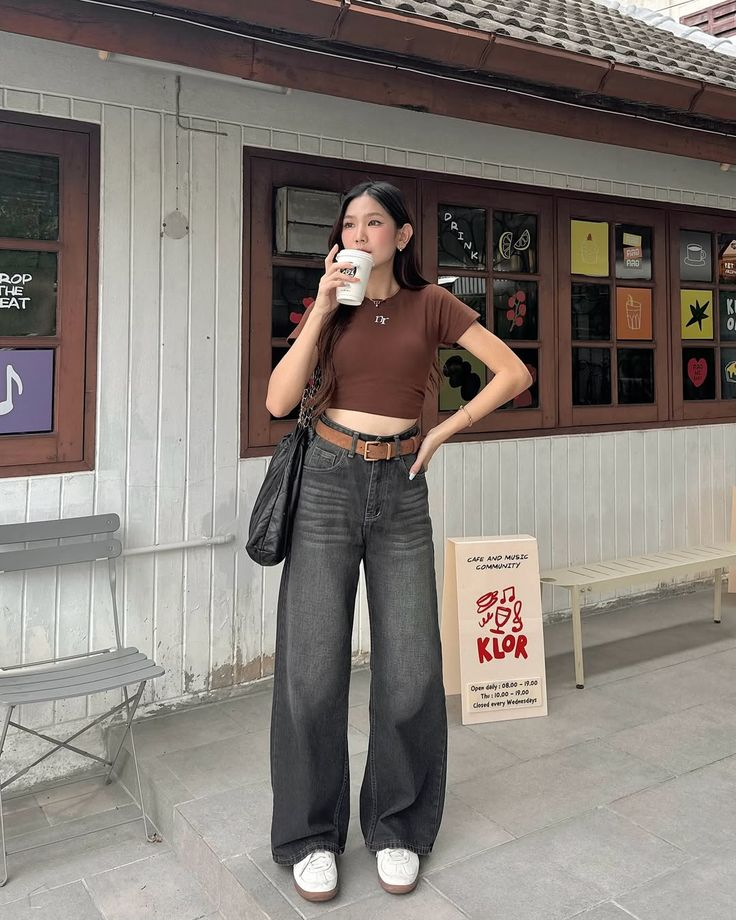 The beauty of this trend is that it suits everyone. Whether you are petite, tall, curvy, or slim, there is a version of this outfit that will work for you. High-waisted baggy jeans help define the waist, while different crop top styles allow you to highlight your best features.