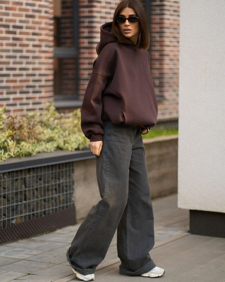 • Oversized crop hoodie with baggy jeans for cozy airport style