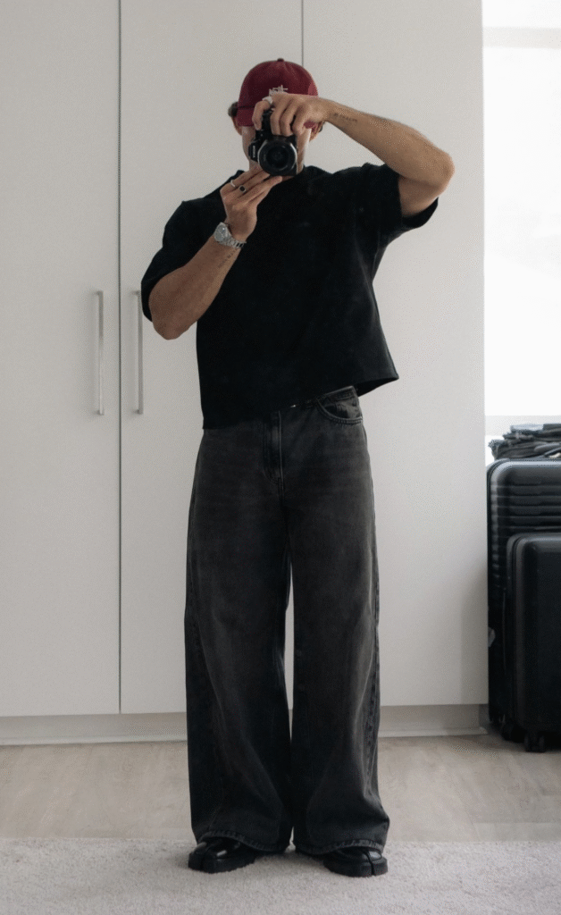 Most men are used to slim or regular fits, where the shape of the jeans does most of the work. Baggy jeans are different. They don’t define your body, so you have to create that structure yourself. That’s why beginners often feel like something is missing. But once you learn how to balance proportions, baggy jeans become one of the easiest pieces to style.
